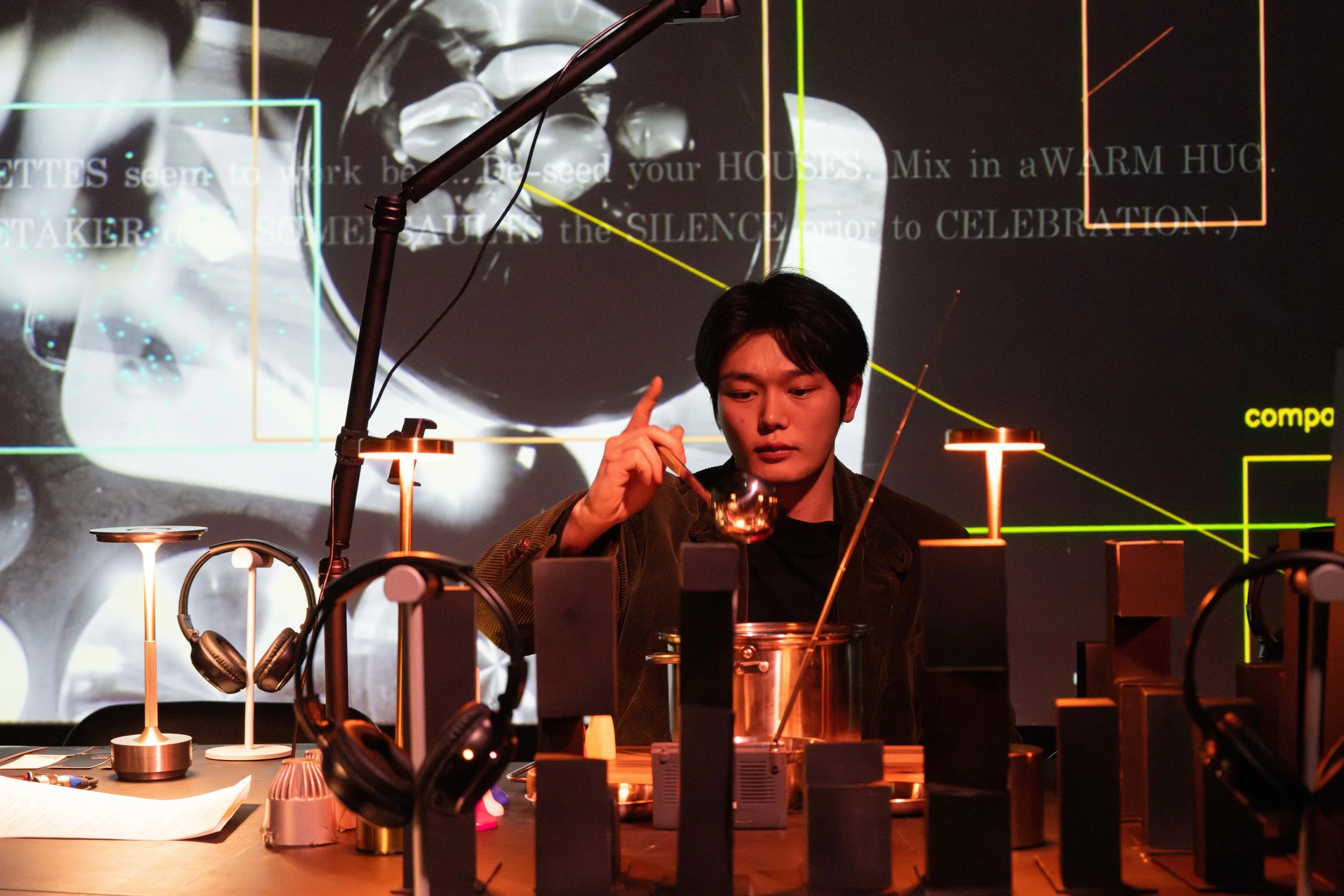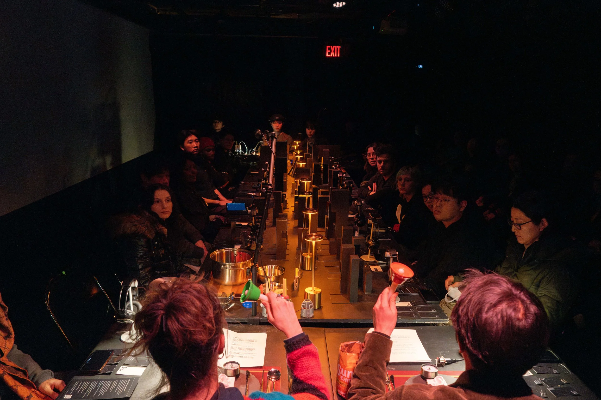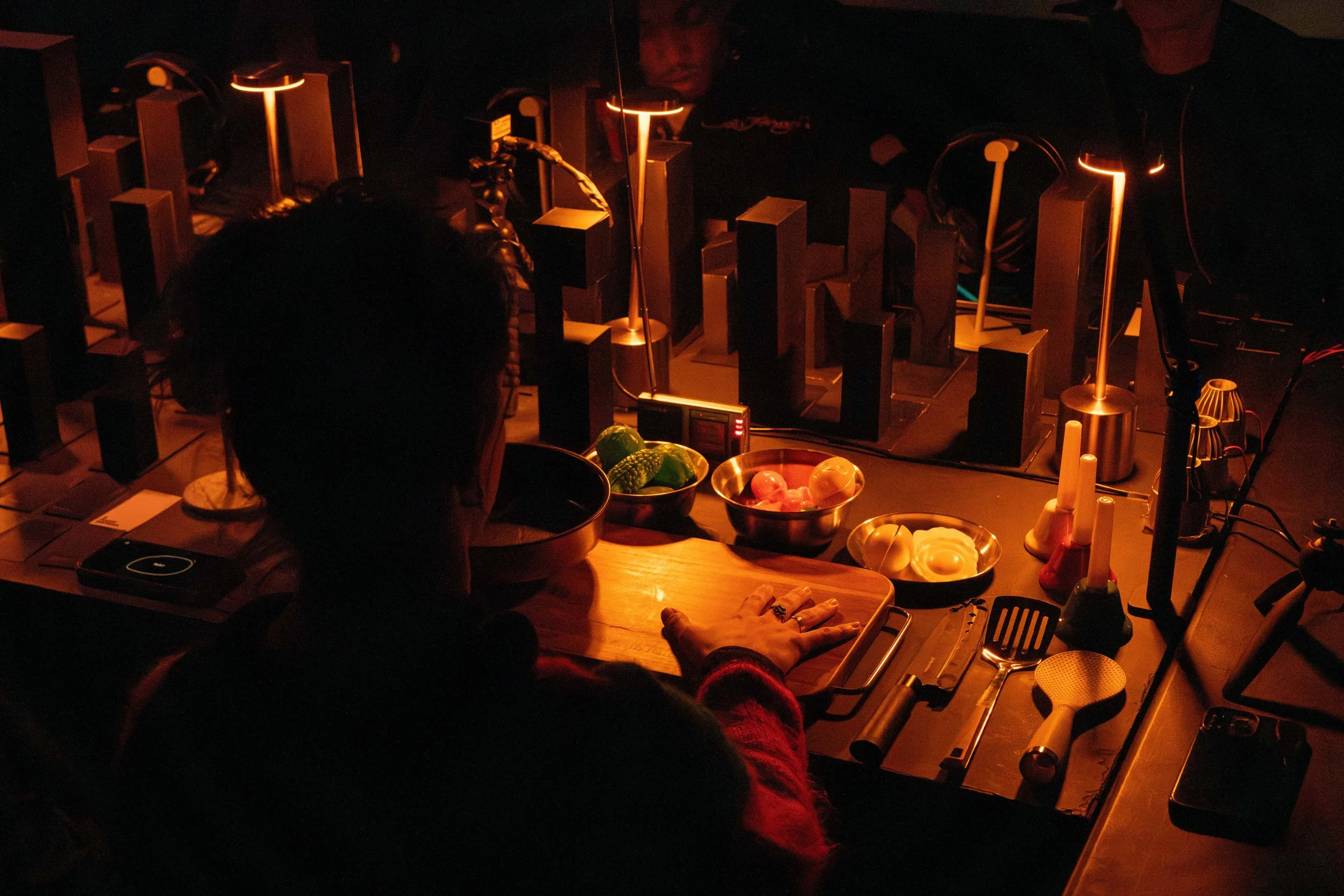 Two performers who have never met exchange their soul recipes—recipes that stand in for their lives—and cook, read, and eat them. The audience gathers around a table, experiencing the performance through headphones and a web-based interface.